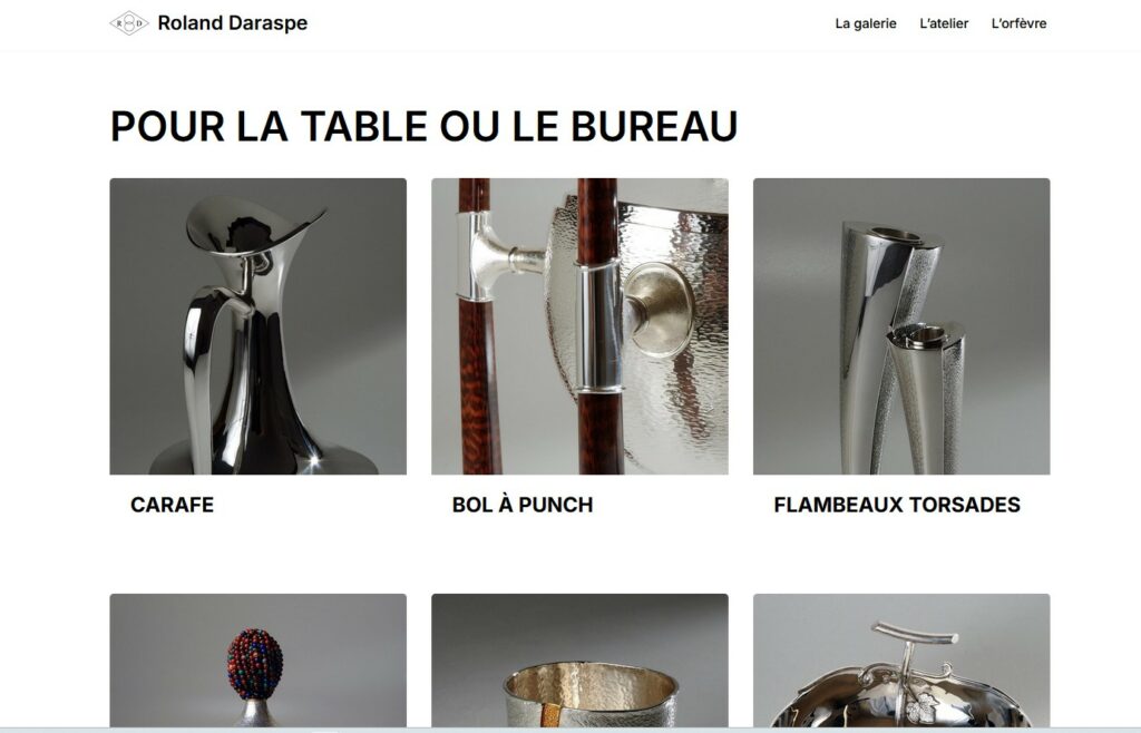 Le site de l’orfèvre Roland Daraspe se refait une beauté, pour mettre encore plus en avant les pièces de l’artiste.
